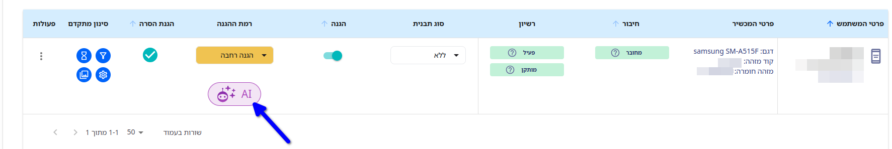 כאשר פותחים שיחת AI, העוזר מתחבר אוטומטית לפרופיל/מכשיר הספציפי שממנו התחלת את השיחה.