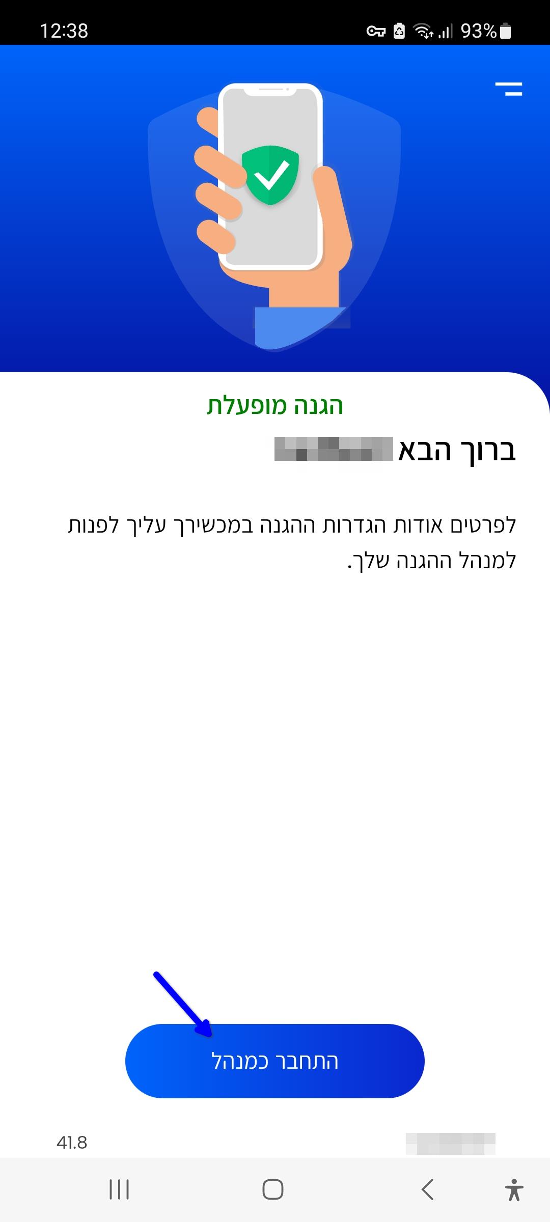 סמל העוזר מופיע ליד רמת ההגנה המוגדרת.